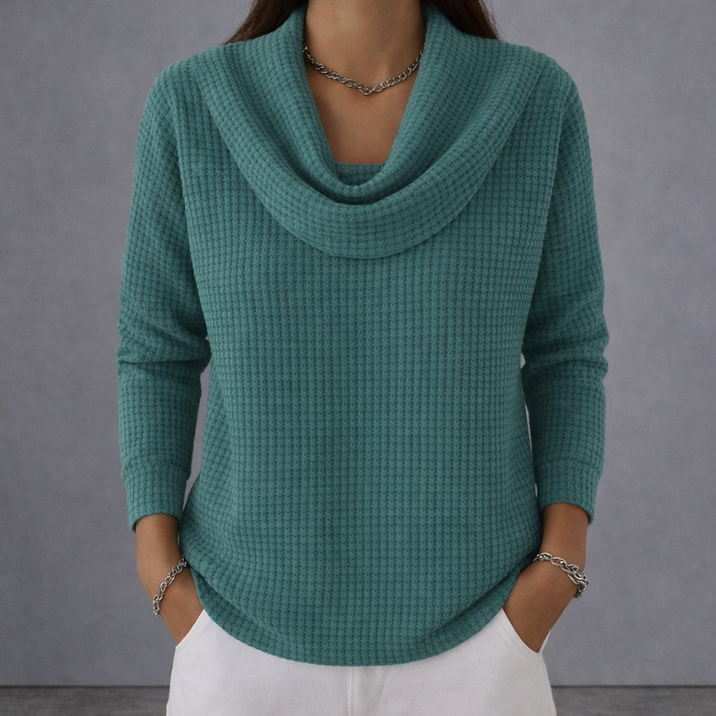 Amber™ – Warme Wafeltrui met Elegante Watervalhals